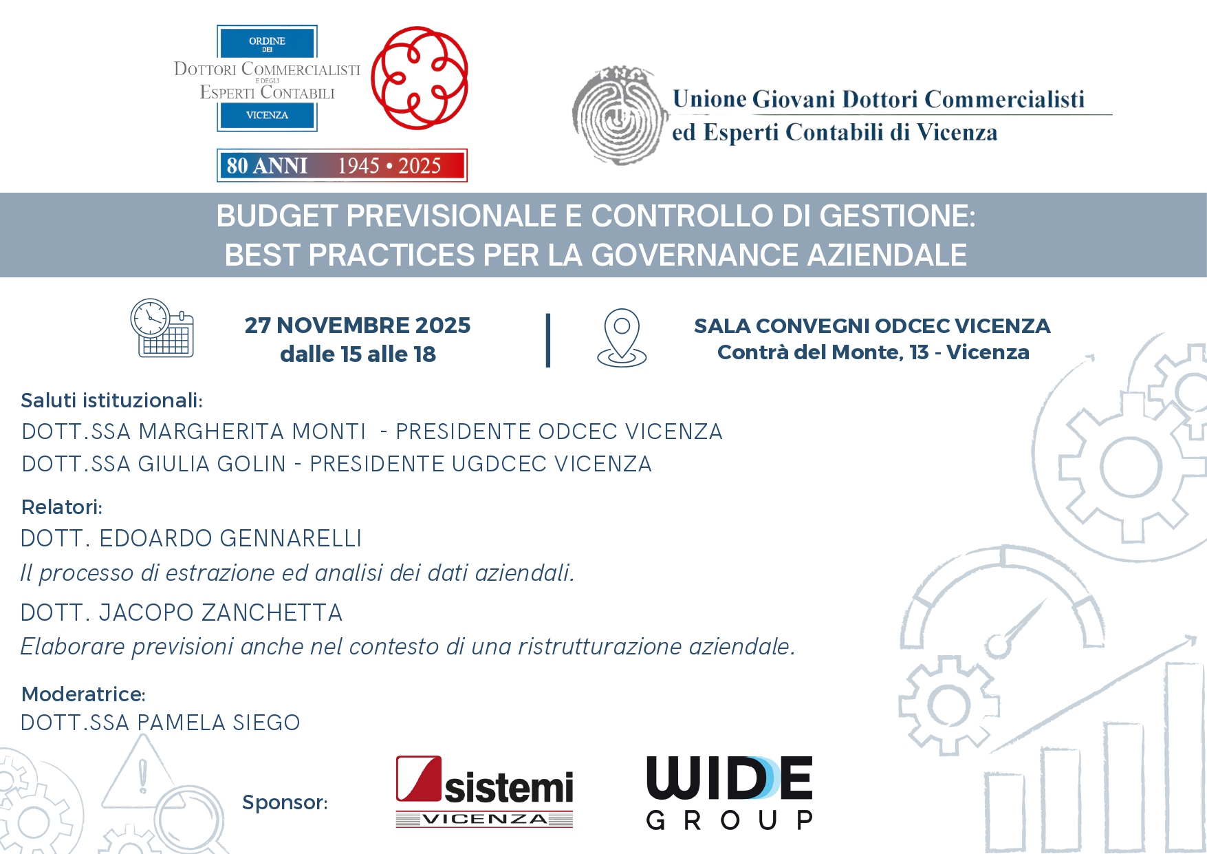 27 novembre 2025 ore 15-18 presso la sala dell'ODCEC Vicenza