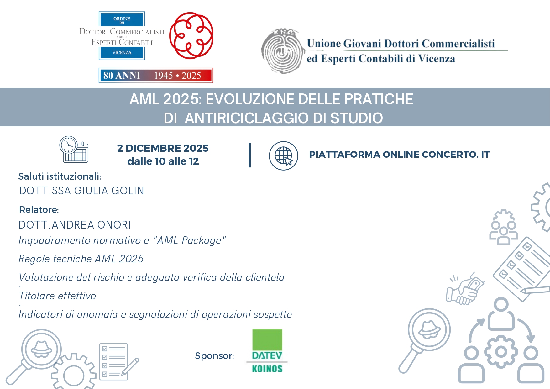 Convegno dal titolo "AML 2025: evoluzione delle pratiche di antiriciclaggio di studio"